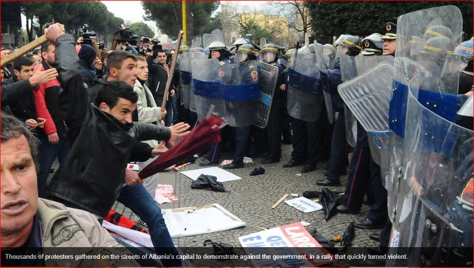 Megjithatë, pavarësisht ikonografinë urbane të protestës, simetrinë boshtore të saj, vijën e frontit midis palëve në konflikt ndarë aq pastër si vija e flokëve e një beqari korçar të staxhionuar galant i shkollës së vjetër, ja edhe një pamje tjetër, fatkeqësisht konkrete e dhunës politike, që nuk ndodh në botën e civilizuar: