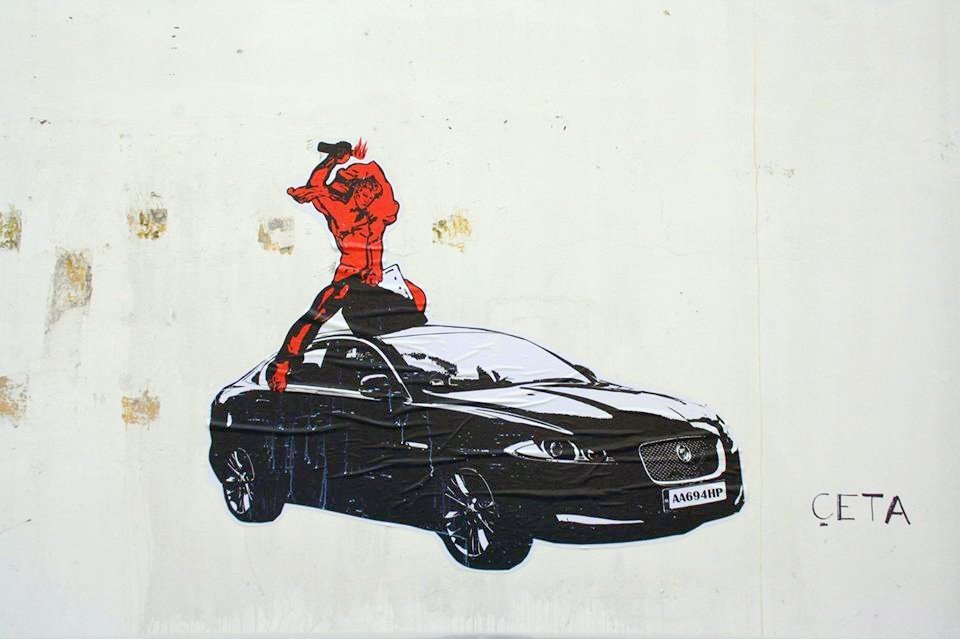 Çeta, “Vojo Kushi is Still Alive,” 2016. Sticker. Tirana, Albania.