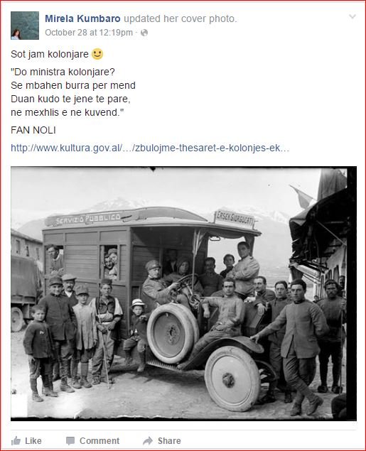 Aq është përhapur ky misatribuim, sa e gjen deri edhe në tekste ku gjithsesi nuk duhej të ish shfaqur, si për shembull te ky status në FB i Ministres së Kulturës Mirela Kumbaro, e cila e përdor një nga strofat e vjershës, ku lëvdohen kolonjarët, si hyrje mikluese në një njoftim të saj për një ekspozitë fotografish të vjetra në Ersekë.