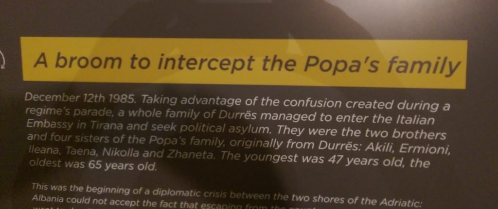 Më në fund, edhe një stendë kushtuar familjes Popa, e cila kërkoi strehim politik në mjediset e ambasadës italiane në Tiranë, në fund të viteve 1980: