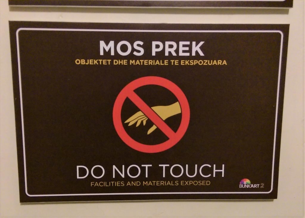 Ja edhe një shenjë murale, që u kujton vizitorëve të mos prekin objektet e ekspozuara: