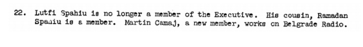 Për Martin Camaj thuhet, shprehimisht, se është anëtarësuar rishtas në një organizatë të quajtur “Komiteti i Prizrenit” dhe punon në Radio Beogradi.