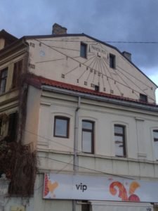 Qendra duket se ka rrëshqitur pak në kohët moderne, dhe pas ndërtesave më shumë se njëshekullore radhë-radhë, dy, vetëm dy të tilla të kujtojnë se sapo e kemi mbyllur shekullin e 20-të. Dhe si për t’i ngatërruar në mendje kohërat, ngjarjet, personat dhe personazhet, fletët e librave dhe heronjtë, ja muri anësor i një ndërtese 3-katëshe me një orë në gjithë faqen që shikon në shesh. Tri katet e saj kanë tri shekuj distancë nga njëri-tjetri. Mbi kryet e saj me shkronja të mëdha kumti dymijëvjeçar i filozofit “Panta rei”.