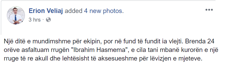 Më duket normale që një kryebashkiak të dilte me këtë status, thjesht informues, për një ngjarje të padëshiruar. E megjithatë, ky komunikim jo vetëm nuk ndodhi, por edhe nuk do të mund të ndodhte, pse do ta përjashtonte vetë intonimi i faqes në Facebook të Veliajt (ajo që muzikantët e quajnë “armatura e çelësit”).
