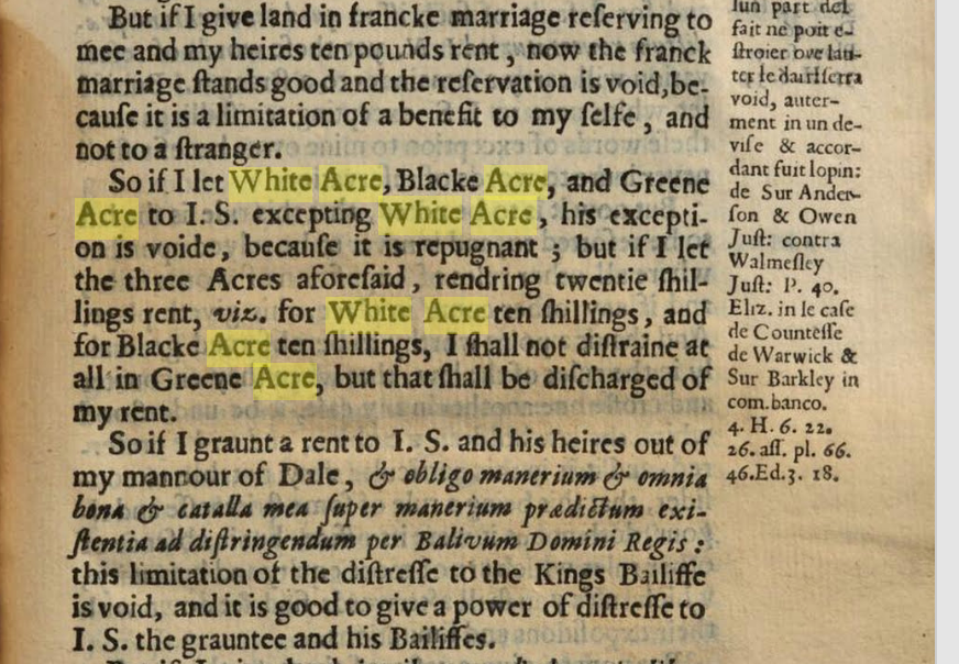 Në traktate juridike të së drejtës angleze [common law], emërtimet simbolike të pronave si White Acre [Ara e Bardhë], Black Acre [Ara e Zezë],