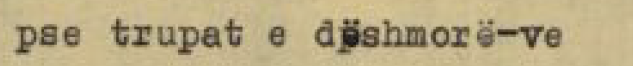 Më lart, fjala përmys është korrigjuar nga vetë daktilografisti, duke shtuar një b në superskript; po ashtu, është korrigjuar me mbivendosje fjala kthejnë (e shkruar fillimisht si kthejë). Të tilla korrigjime, me mbivendosje, ndeshen relativisht shpesh në tekst.