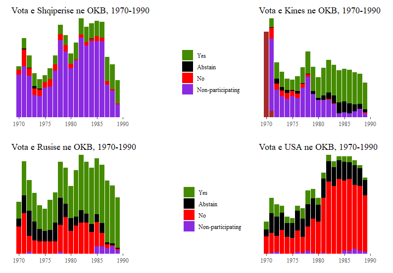 Ka një hapje për nga vendet perëndimore gjatë viteve të fundit të 70. Izolimi, nëse ka qenë i tillë, ka zgjatur shumë pak. Ndërsa ndarja në blloqe e shteteve tregon një trend: gjatë “izolimit” ka pasur një zhvendosje gjeopolitike drejt vendeve të polit të tretë (Non-Aligned Movement). Por kjo duhet analizuar në mënyrë statistikore (nëse do i perceptonim këto të dhëna si seri kohore) dhe duke analizuar variabla të tjerë, p.sh. votën e Shqipërisë në OKB (shih Holloway 1990 me cluster analysis apo Powers 1980 me PCA, analize faktoriale), dhe përmes metodave cilësore (qasjet post-kolonialiste).