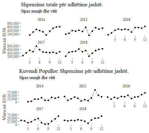 Nga grafiku i udhëtimeve gjatë muajve, vihet re se një pjesë e madhe kryhen (ose regjistrohen si shpenzime) në dhjetor. Jo se konferencat, trajnimet apo takimet janë lënë për dhjetor, por sepse atëherë janë pushimet e pazaret e Vitit të Ri, sidomos për Kuvendin Popullor.