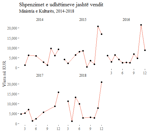 Në të njëjtat kushte fluturojnë edhe nëpunësit e Ministrisë së Kulturës, që për të shpenzuar rreth 310 mijë EUR (2014-2018), gjithashtu zgjedhin kohën e fundvitit për udhëtime. Ndoshta, veç koncerteve të fundvitit, afron planifikimi i buxhetit, dhe shume programe rishikohen nëse nuk shpenzohen fondet e parashikuara për projektet.