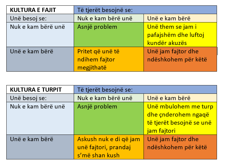 Gjithashtu, me erdhi ne mend, qe pavarsisht se cfare kulture i perkasin, pra te fajit, apo te turpit, nga kjo pikpamje njerziet mund te klasifikohen ne:
