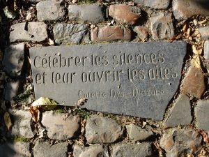 Nga Colette Nys Mazure (që më thonë se edhe ajo nuk banon larg prej aty), kanë sjellë vargjet: Célébrer les silences et leur ouvrir les ailles (të kremtosh qetësitë dhe t’u hapësh krahët).