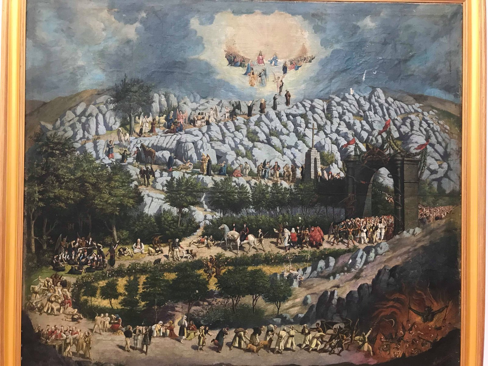Në këtë pikë, piktura jo vetëm merr funksionin e një shpalljeje të një mesazhi etik, fetar, një ungjilli të paraqitur përmes paraqitjes me imazhe reale të metaforave, virtyteve, mëkateve, veseve, urdhërimeve, të cilat bëhen ngjarje në këtë pikturë, një realitet i shpirtërores, një “zbulesë”. Por autori po bën edhe një gjykim tjetër që lidhet me vendin e tij: Shqipëria ishte një vend i drejtuar në rrugën për në ferr në kohën kur Perandoria Osmane ishte duke u shpërbërë.