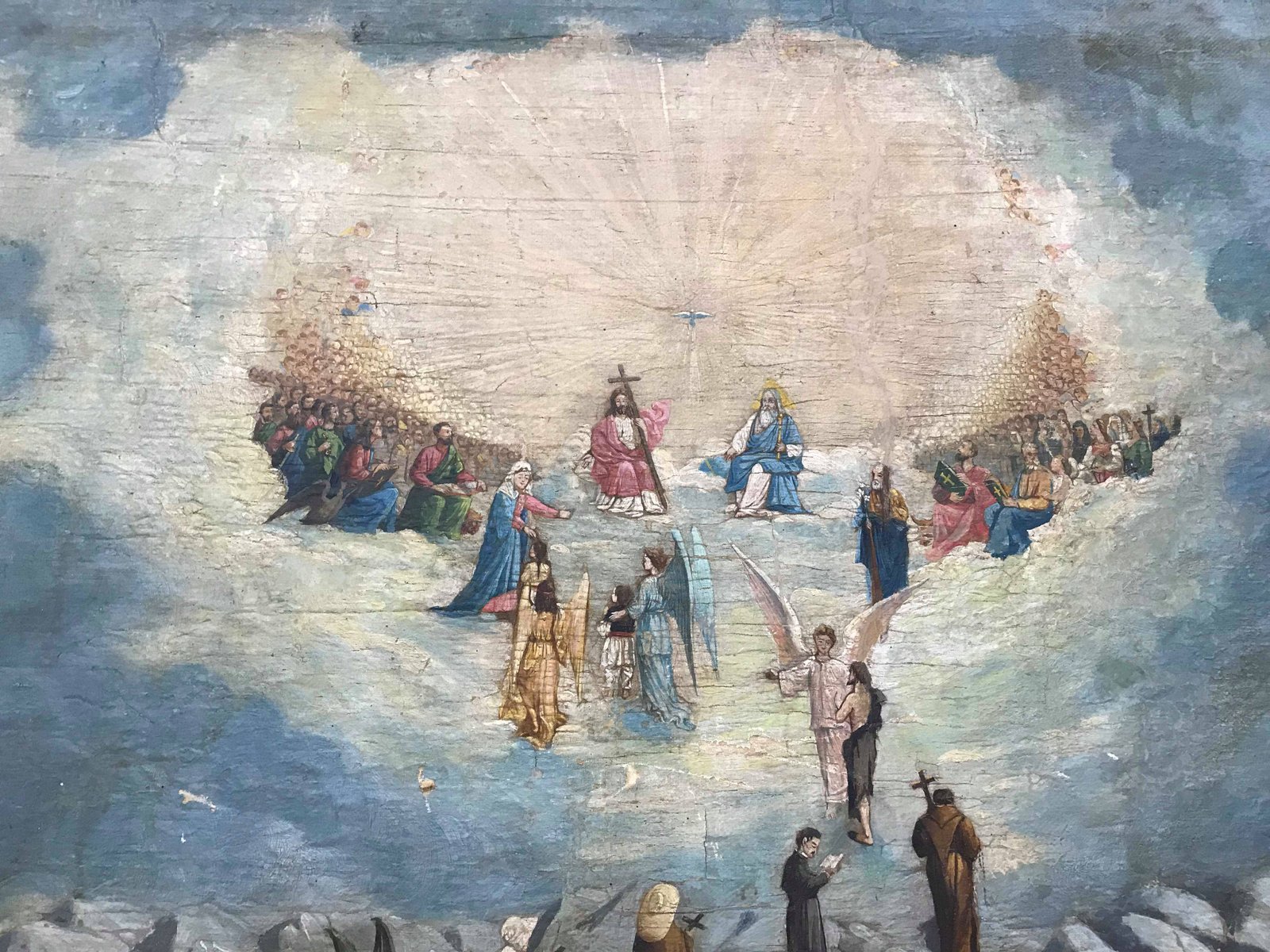 Në qendër, lart, në mes të një qielli me re shtëllungore të zeza shfaqet e bardhë parajsa, poshtë, në qoshe të pikturës, në të djathtë është Ferri, si një hapësirë me flakë zjarri ku qëndron në mes Djalli krahëhapur. Nga flakët e kuqërreme të zjarrit duken koka njerëzish në vuajtje. Është “furra e zjarrit” (Mateu 13:42) ose “liqeni i zjarrit” (Zbulesa 20:14).