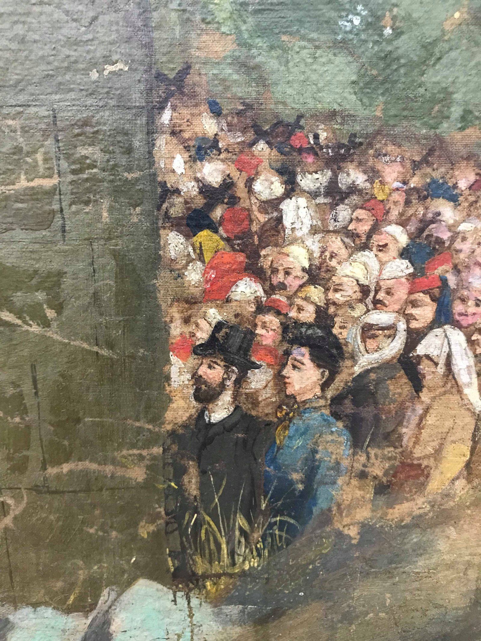 Por, sipas meje, e vetmja e dhënë historike, që i vendos krejt ngjarjet në një kohë dhe hapësirë të caktuar, që e merr pikturën nga tema e saj e pakohësisë, përjetësisë, dhe e hedh në një kohë dhe hapësirë të caktuar, është prania e një çifti fare të ndryshëm në veshje e dukje nga gjithë popullata e pikturës. Ky çift afër derës, me qëndrimin gati të hyjnë në derën e gjerë është, siç edhe dihet tashmë, Edit Durhami, e shoqëruar nga një zotëri francez a anglez[7].