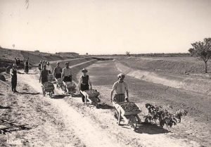 Në simbologjinë e punës socialiste, karroca vjen para së gjithash si karrocë dore, me të cilën barten gjithfarë produktesh ndërtimi: dhe, gurë, çimento, llaç… Me karroca dore janë tharë kënetat, hapur tokat e reja, ndërtuar hekurudhat dhe ngritur muret dhe oxhaqet e fabrikave. Në fotografitë e kohës, kjo lloj karroce dore konoton dinamizëm dhe shpejtësi, duke i shërbyer si kontrapunkt punës së mirëfilltë të krahut.