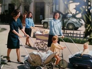 Fotoja nuk ka datë por, duke gjykuar nga modeli i veturës në sfond, duhet të jetë e viteve 1960-1970: edhe motra ime është rritur në një karrocë kështu. Gratë – nënat – duken të fokusuara, dhe pa vetëdijen e njëra-tjetrës; imazhi duhet të jetë i inskenuar, siç tradhtohet edhe nga fytyra e vajzës së vogël, e cila harron të shohë përpara.