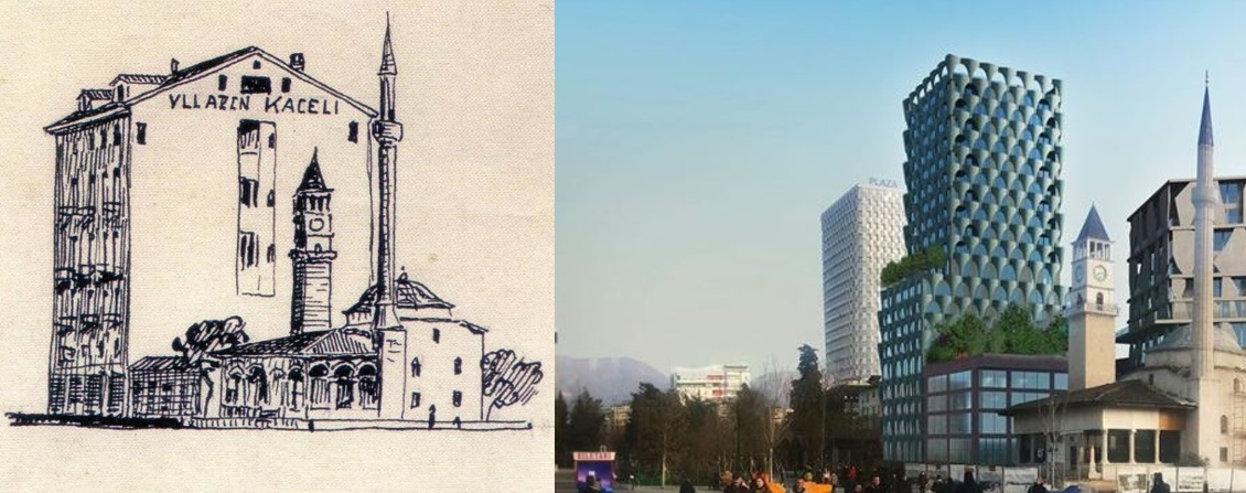 Ne mos, ne mos artisti Kaceli ka patur nje vizion te papritur dhe me ate vizatim, ka parashikur se si do te ripermason dhe si do te duken keto dy objekte simbolike te qytetit 80 vjet me vone.