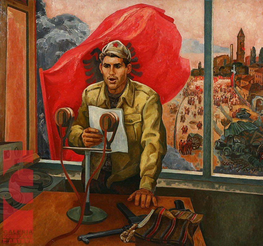 që kanë një hijeshi të vecantë dhe një tis romantik dhe emancipues për mua (paksa idiot, them ndonjëherë, gjersa ajo fitorje ishte simbolikisht e para që solli për gati 50 vjet regjimin xhelat komunist të Tiranës. Por unë e di se Tirana mbeti komuniste jo se u bë luftë asaj dite, por se ashtu ish vendosur në ambiente ku as ne, as Enveri s’kishim asnjë fuqi ndikimi. Ndaj mund të vazhdoj me ndërgjegje të pastër t’u gëzohem të rinjve që e deshën Tiranën e lirë, sido që ajo po rirobërohej nga një e keqe edhe më e madhe dhe e thellë. Por ato s’kishin lidhje me njëra-tjetrën – së paku jo atë ditë). Vërtetësisht prania e Pallatit Kaceli ndjek pikturat e realizmit socialist me temë nga Çlirimi i Tiranës, sidomos ajo e Bukurosh Sejdinit dhe Pandi Meles.