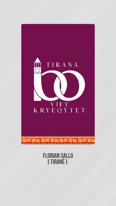 Ka koncept të fortë tipografik, ku mundohet te bashkoj kullën me numrin 100. Kontrasti midis “100” dhe “Tirana Vjet Kryeqytet” është shumë i madh dhe ngjajnë gati të ndara.