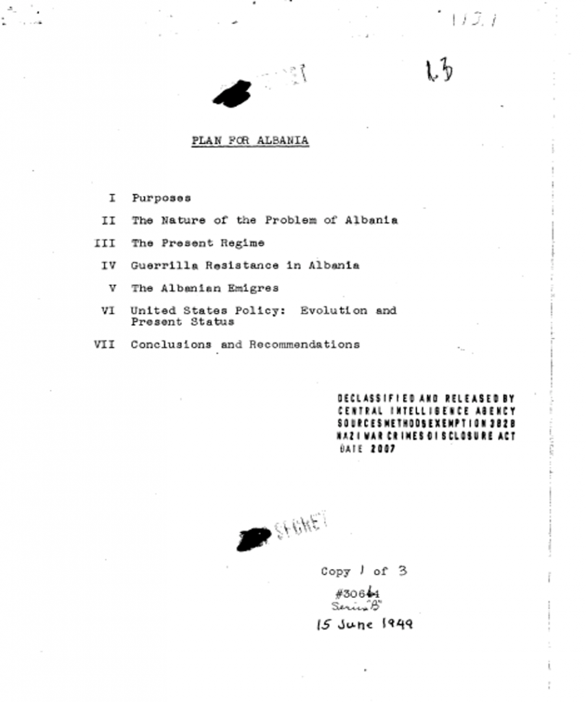 [62] National Archives and Records Administration, NARA, Plan for Albania, Dosjet e CIA-s për operacionin OBOPUS BGFIEND, ff. 24-25.