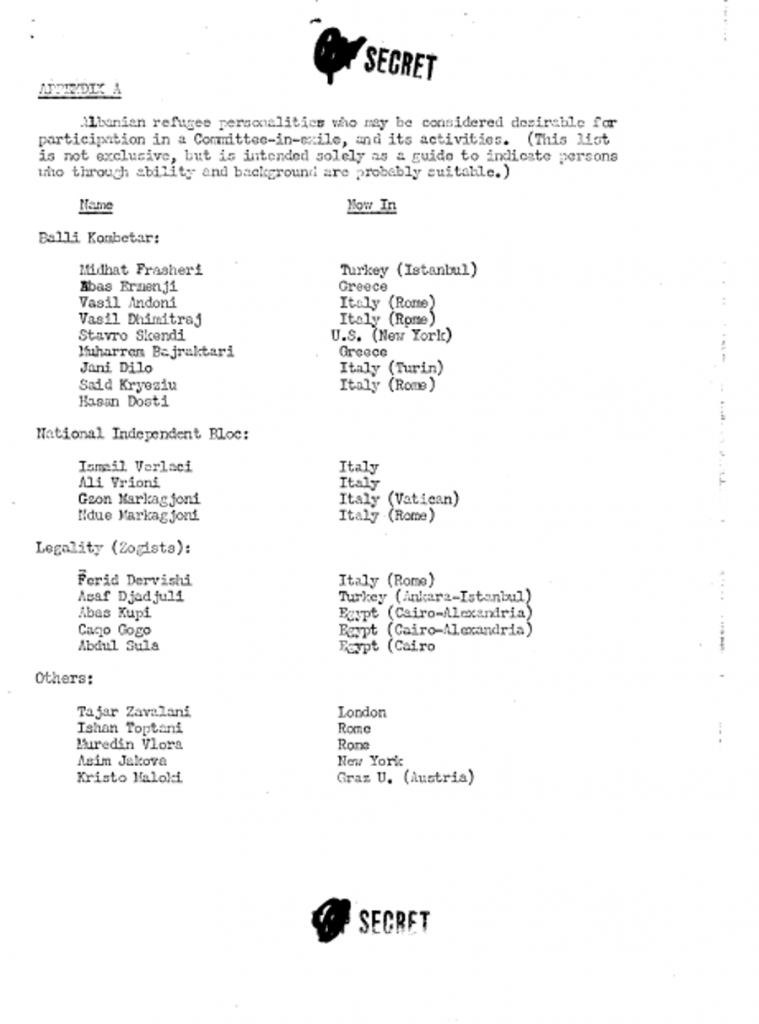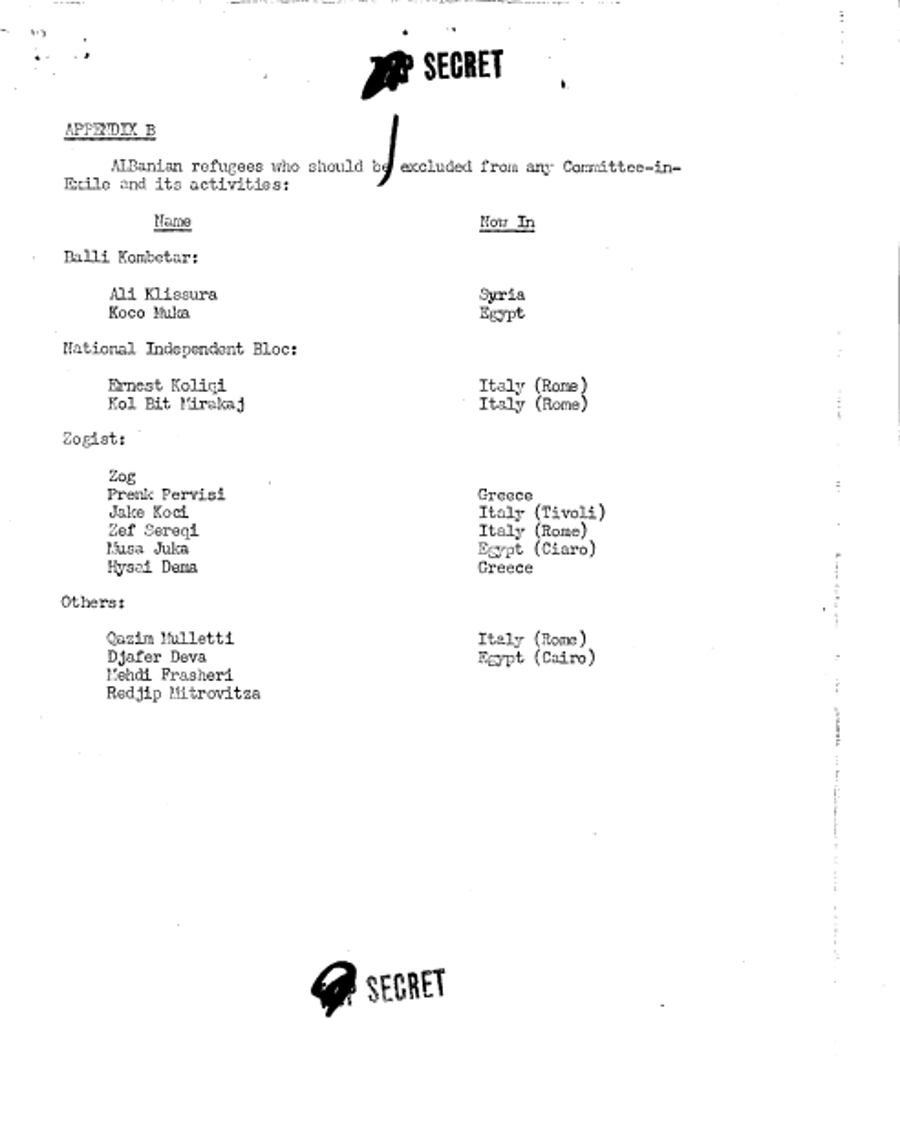 Dokumenti 5 – Lista A dhe B me personalitetet “e dëshiruara” dhe që “duheshin përjashtuar” nga planet amerikane për Shqipërinë.[62]