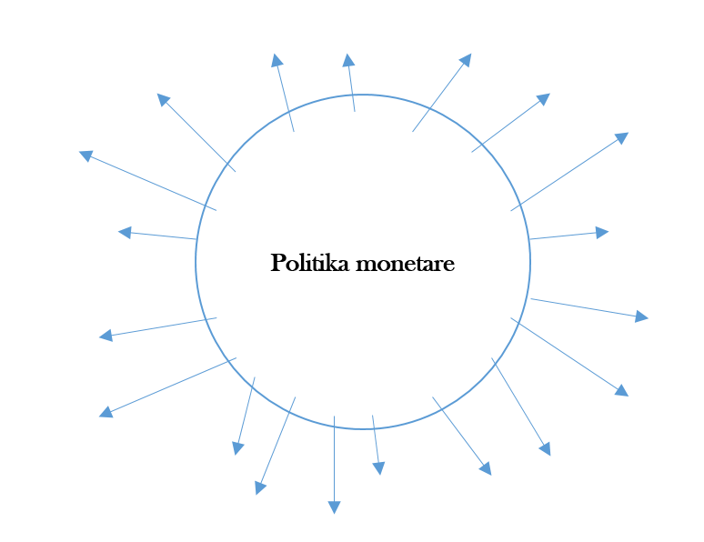 Skica 2. Ndërsa politika monetare e Eurozonës është domain i një institucioni mbishtetëror, Bankës Qendrore Evropiane, 19 vendet anëtare kanë sovranitet mbi politikat fiskale përkatëse (të ilustruara nëpërmjet shigjetave centrifugale.