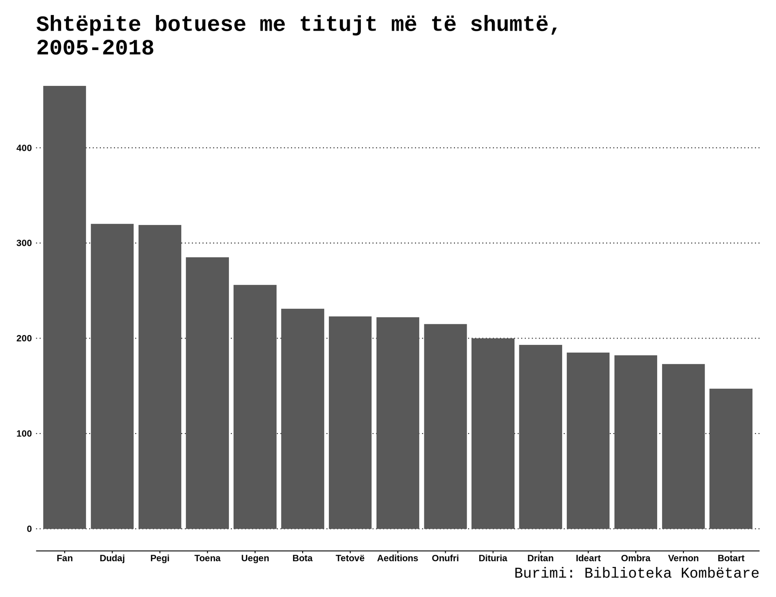 15 Shtëpitë botuese me më shumë tituj të përkthyer.