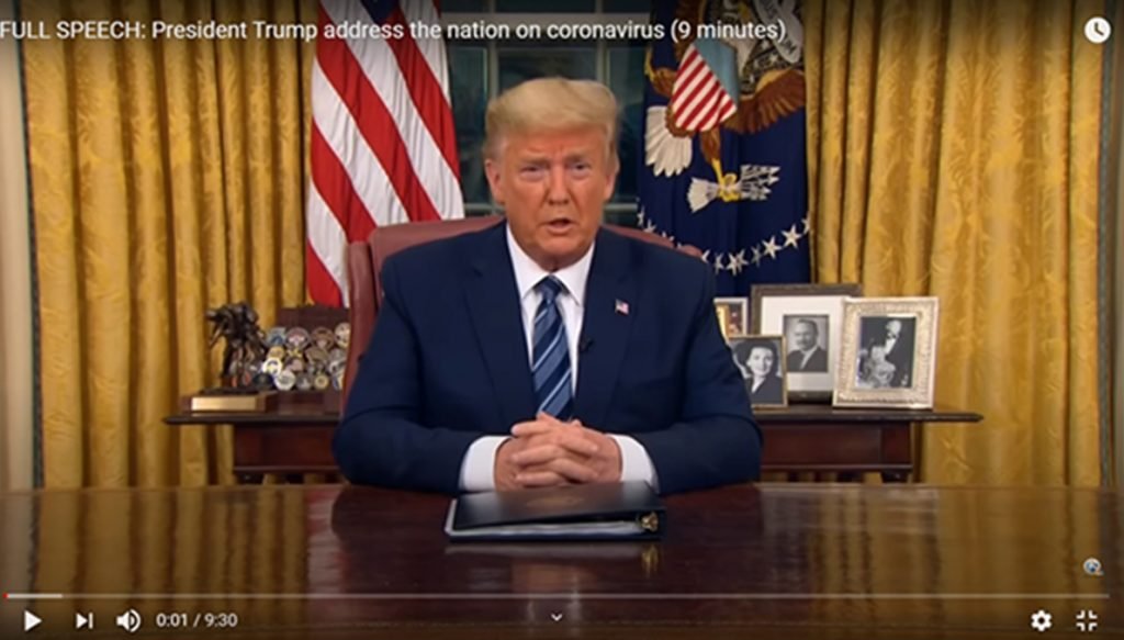 Figura 3. Presidenti Amerikan gjatë fjalimi të 11 marsit, mbi krizën koronavirus. (youtube)