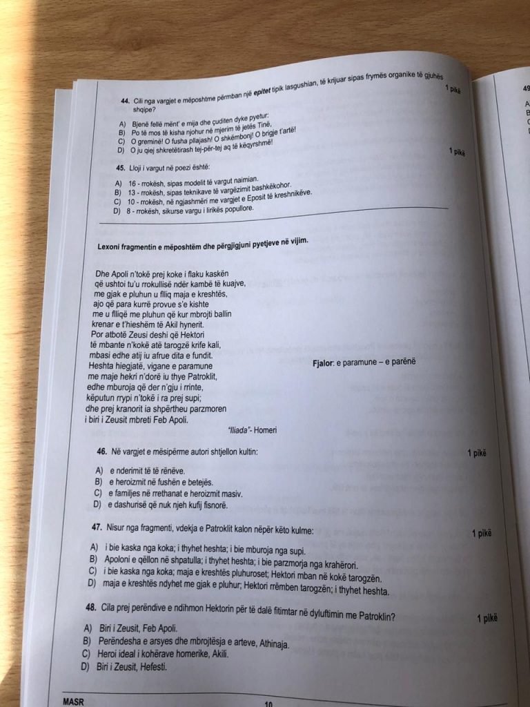 Si përfundim, ajo që mund të them për provimin e Maturës Shtetërore në gjuhën amtare është se aty testohen EDHE dije që nuk janë fryt i studimeve dhe i shkencës shqiptare. Mendoj se janë një përshtatje e njohurive të importuara nga një kontekst dijesh që nuk lidhet në thelb me atë që ne e quajmë albanologji dhe gjuhësi shqiptare dhe që nuk i përqafon (nuk guxoj të them i shpërfill) arritjet më të mira të kësaj fushe. Së dyti, mësuesi i lëndës gjuhë amtare është pjesërisht i pajisur me njohuritë që teston ky provim. Ai ka një bazë të mirë shkencore për gjysmën e dytë të testit, por jo për të parën. Për rrjedhojë, për 15 pyetjet e para nxënësi ecën në mjegull, prindi ngre supet. Në këtë pikë, ose do të ndryshojnë universitetet, disiplinat shkencore që mësohen aty, programet e studimit, ose duhet të ndryshojnë programet e gjuhës amtare të shkollave të mesme, ose duhet të ndryshojë/të reflektojë ndryshimet ekipi që harton testin e Maturës Shtetërore në QSHA.