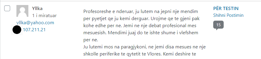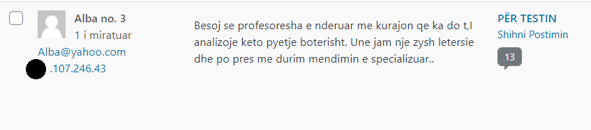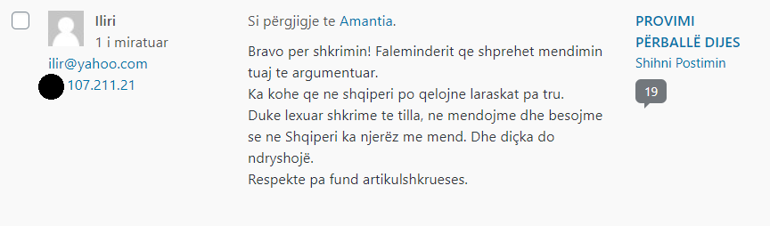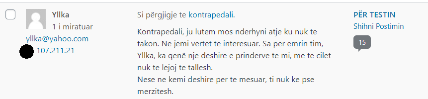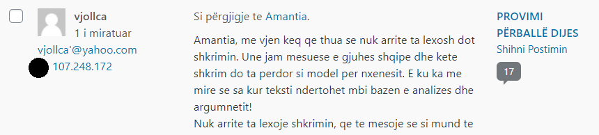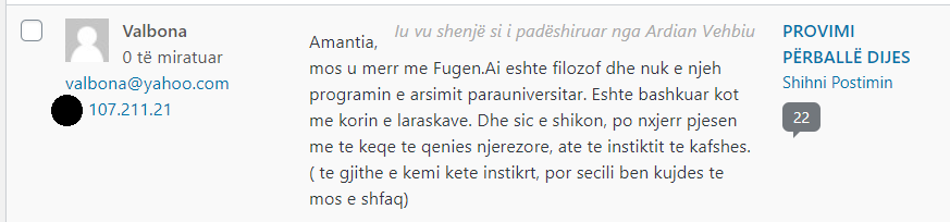 Administratori i sajtit Peizazhe të fjalës ka akses në adresat IP të komentuesve – çfarë i shërben, mes të tjerash, edhe për të moderuar komentet.