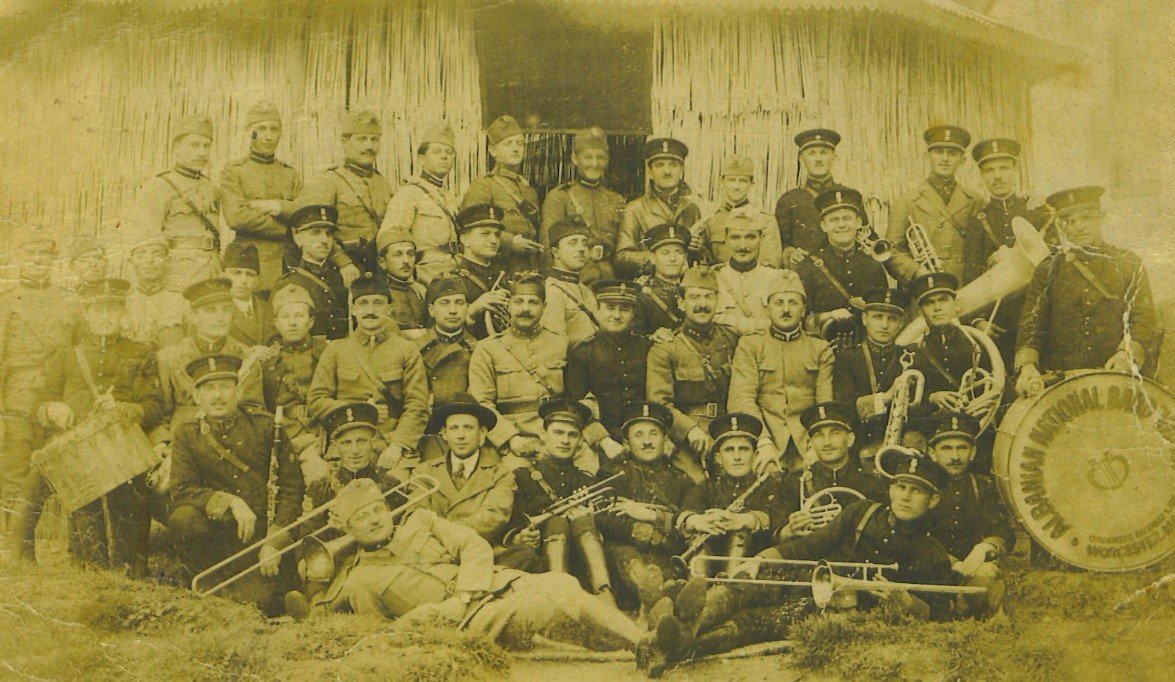 Foto: Banda kombёtare VATRA nё Shqipёri nё fillim tё viteve 1920. Nё qendёr Thoma Nassi. Botohet pёr herё tё parё.