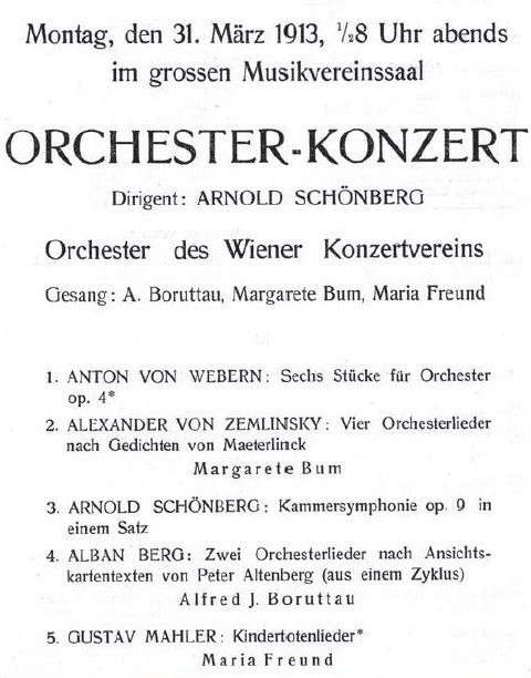[7] Për më shumë mbi këtë “skandalkonzert” shih: Joy H. Calico. “Noise and Arnold Schoenberg’s 1913 Scandal Concert”, botuar te Journal of Austrian Studies, Vol. 50, nr. 3-4 etj.