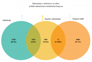 Një tezë tjetër që mund të testohet, është ajo e ndërrimit të elitave pas lufte (shih Michael Schmid-Neke, 1993.) Venn diagram i mëposhtëm tregon se prerjet janë relativisht më të mëdha ndërmjet periudhave sekuenciale; pra ka vazhdimësi nga qeveritë para- me atë pas-lufte. Duhet analizuar më pas me metoda statistikore nëse këto janë thjeshtë rastësore, nga efekti i gjeneratës (analizë sekuenciale,) apo ndonjë faktor tjetër (për këtë lipset një tjetër dataset, me të dhëna mbi komunistët e parë dhe rrjetin e tyre.)