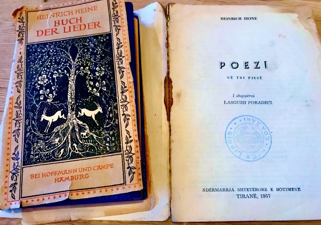 2- Buch der Lieder – Botim i vitit 1945 nga Shtëpia botuese Hoffmann & Campe Verlag, Hamburg si dhe vëllimi i poezive – botim i vitit 1957, përkthyer nga Lasgushi.