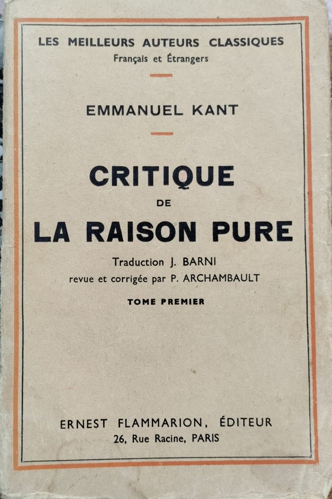 Duke rrëmuar mes librave që kanë mbetur në shtëpinë në Tiranë, ja ku më del përpara një edicion i vitit 1934, i Kritikës së arsyes së kulluar të Kantit, në frëngjisht. Nuk e kisha ditur që u kish mbijetuar përmbysjeve të bibliotekës sonë dhe transferimeve të shpeshta, ndoshta ngaqë librin e kisha pasë mbështjellë me një fletë të revistës “Ylli” të vitit 1977 dhe ashtu ishte “anonimizuar”.