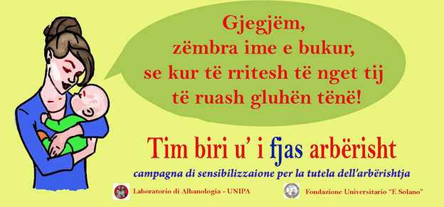 Po a është tekë e imja dhe e matësve ndërkombëtarë që e quajnë Arbërishten të rrezikuar? Arbërishtja ka kohë që pëson zhvendosje (shift) drejt italishtes, që me fjalë më të thjeshta do thuhej zëvendësohet prej saj. Në këta dhjetëvjeçarë (a më shumë) që kjo ndodh ajo ka rezistuar me një fuqi të jashtëzakonshme inovatore, duke ndryshuar brenda brumit të vet që të mbajë forcën e vet ekspresive dhe komunikuese, natyrën e vet të ndryshme prej gjuhëve në kontakt, ka marrë e dhënë fort me italishten dhe sicilishten (madje edhe me shqipen në përdorimet e saj të përzier prej elitës arbëreshe, si dhe në gjithë krijimet e shkruara e të botuara, e në përkthimet e deritashme të veprave të njohura prej gjuhësh të tjera në arbërisht – rasti i Dantes për shembull). Deri këtu, e gjitha kjo dinamikë komplekse nuk është shenjë vdekjeje dhe nuk e bën një gjuhë të rrezikuar, përkundrazi, tregon vitalitet dhe ndryshime normale (language change) që i ndodhin çdo gjuhe. Ajo që e shenjon arbërishten sot si gjuhë të rrezikuar është zëvendësimi i saj prej italishtes (language shift) në shumë drejtime: fshatra të tërë në Italinë gadishullore dhe në Siçili dëftejnë bjerrje të gjuhës: numri i folësve të arbërishtes zvogëlohet në vlerë absolute dhe në përpjesëtim me ata që flasin italisht; domenet gjuhësore[xv] të përdorimit të arbërishtes tkurren duke e mbyllur atë gjithnjë e më shumë në shtëpi e duke ia marrë të folurit në zyrë, në dyqan, në shkollë ku dikur ishte më e fuqishme se sot. Marr veç shembullin e Urës në Piana ku bëheshin passeggiatat mbrëmjeve verore, ku në 1990 dëgjoje shumë arbërisht, ndërsa sot, pas 30 vjetësh italishtja ka zënë vend mirë; ose baret në Contessa Entellina ku në 1990 hasej shpesh arbërishtja ndërsa sot dominon italishtja. Zinxhiri i kalimit të gjuhës nga prindërit tek fëmijët po thyhet me shumë shpejtësi: për mua ky është treguesi më i fortë i humbjes në favor të italishtes. Posteri i bukur në krye të këtij shkrimi është shenjë e qartë e asaj që dëshirohet për të ruajtur një gjuhë. Pak fëmijë flasin arbërisht sot; edhe ata që ende e njohin prej nonërave nuk e përdorin më nëpër shkolla. Problemi i humbjes së “gjitonisë” i diskutuar shpesh nga poeti dhe studiuesi arbëresho-kalabrez Mario Bellizzi, ka një peshë të rëndë mbi gjuhën. Folësi i arbërishtes rrallohet dhe mosha mesatare e tij vjetrohet me një shpejtësi shqetësuese. Për fat, në disa fshatra arbëreshë ende ka fëmijë e të rinj që s’e kanë humbur krejt gjuhën, por që kanë vështirësi të shprehen në të për tema që kalojnë ato elementaret dhe që kërkojnë më shumë se një grusht fjalësh. Dhe këtu nuk po diskutoj fare bjerrjet strukturore që kufizojnë thellësinë e përdorimit dhe të shprehjes. Pandharipande (2002)[xvi] diskuton dy koncepte teorike me vlerë orientuese në këtë diskutim: atë të peshës funksionale (angl. functional load) dhe transparencës funksionale (angl. functional transparency). I pari është aftësia e gjuhës të funksionojë në një a më shumë domene gjuhësore. Këtu, siç thashë, arbërishtja është tkurrur shumë duke i dhënë udhë një bilingualizmi fort asimetrik dhe një situate diglosike në rritje. I dyti është kontrolli (pushteti) që gjuha ka brenda një domini, sa i ndërhyn ose jo gjuha tjetër brenda tij. Edhe këtu, shtëpia ku dikur arbërishtja mbretëronte pa të dytë, nën ndikimin e shkollës, televizionit, mediave, dhe shumë shkaqeve të tjera në të cilat unë nuk jam përqendruar në këtë shkrim, kanë bërë të vetën.