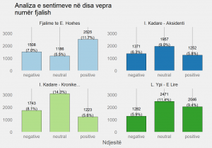 II. Vijmë në pikën e dytë të esesë. Libri i L. Ypit që përcjell ndjenja pozitive, optimiste [13] është kritikuar pikërisht për trajtimin e cekët të periudhës komuniste. Kjo vihet re duke krahasuar sentimentin e fjalëve të përdorura me rrëfimet e Kadaresë, që janë më të zymtë e pesimistë. Apo fjalimet e E. Hoxhës, që gjithashtu prisja të ishin më negative, por gjithsesi rezultojnë polarizues (shih grafikun). Por a duhet fajësuar Lea Ypi për trajtimin optimist?
