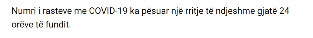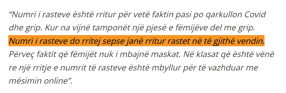 Shembulli më lart, autentik, përtej xhevahirit “numri i rasteve do të rritej sepse janë rritur rastet”, dëshmon edhe kombinimin fatlum: rritje e numrit të rasteve.