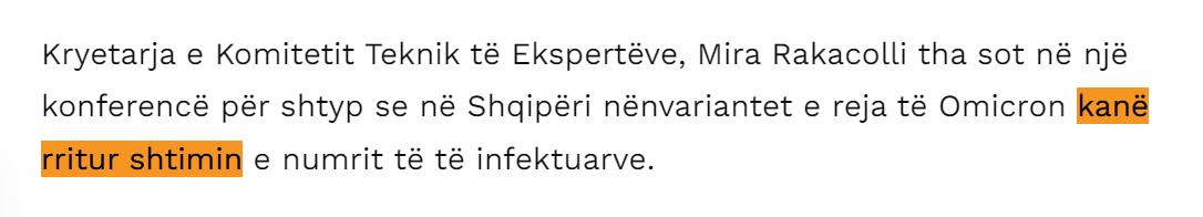 Duke kërkuar sot të dhëna për Covid-in në Shqipëri, ndesha në këtë frazë të çuditshme: