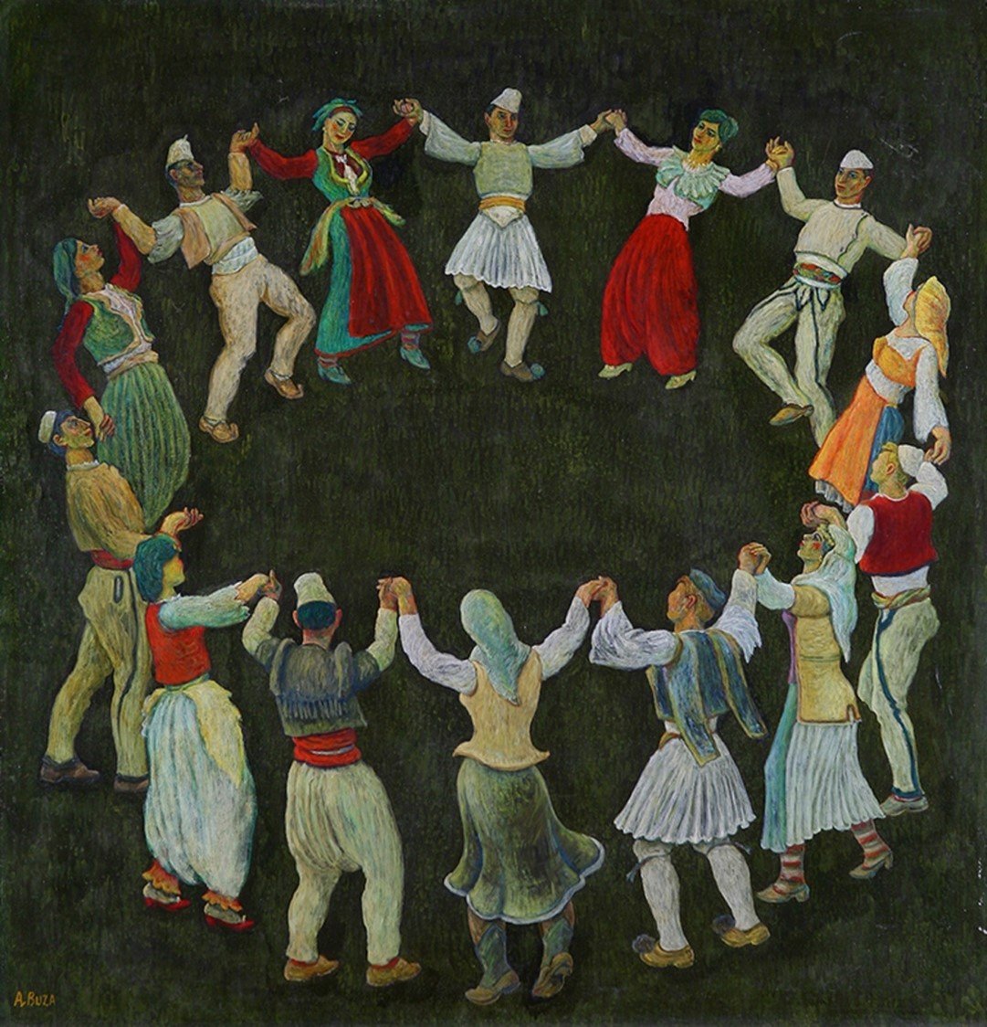 Këtu akti i vallëzimit, në një valle rrethore mund të lexohet si simbol i vetë kombit dhe i “festivitetit socialist”; ku burra e gra veshur me kostume tradicionale nga gjithë krahinat kërcejnë së bashku. Kjo vepër shërbeu edhe si imazh-logo i festivalit folklorik të Gjirokastrës, duke u vendosur në skenën e tij, po aq sa edhe në shumë kartolina të kohës. Kësisoj, ajo kthehet në një përfaqësuese të qartë të punës kulturore me folklorin dhe kulturën tradicionale brenda modernitetit socialist që, si e tillë, nuk kishte aq lidhje me të shkuarën tradicionale, sesa me të tashmen, “e lavdishme” dhe “progressive”, në të cilën kjo “tradicionale” po rijetëzohej.