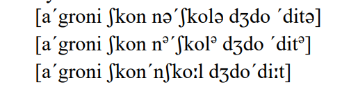 Nëse transkriptimi fonematik është i njëjtë, transkriptimi fonetik nuk është i njëjtë në raste të ndryshme: