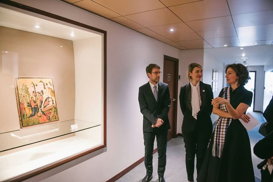 Ikona “ishte pjesë e ekspozitës së një viti më parë, e hapur me rastin e 60-vjetorit të UNESCO-s, dhe pas mbylljes së saj, “Ringjallja e Llazarit”, së bashku me veprat e tjera të ekspozitës u rikthye në Shqipëri, pranë Muzeut Mesjetar të Korçës. Me Urdhër të Ministrit të Kulturës dhe mbi një kontratë 2-vjeçare me UNESCO-n, ky objekt udhëtoi drejt Parisit dhe do të qëndrojë i ekspozuar në ambientet e UNESCO-s.”[15]