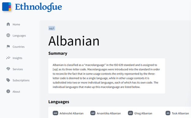 Çështja se sa “shqipe” apo sa “arbërishte” ka, do donte një tjetër diskutim që do dalë në formë artikulli të plotë në fillim të tetorit, në Peizazhe të Fjalës. Tani që UNESCO duke flirtuar me shtetet kombe për ca më shumë se “pesë grosh t’qelbëta”, e ka rrumbullakosur pozicionin e vet progresiv kundër zhdukjes së gjuhëve, shohim si i koncepton “shqipet tona” Ethnologue – referenca më e plotë për gjuhët ekzistuese sot në botë: