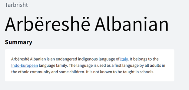 Para dy vjetësh në Kuvendin e Parë për arbëreshët, organizuar nga Qendra e Studimeve dhe Publikimeve për Arbëreshët (QSPA[i]), diskutova për rreth një orë tiparet e arbërishtes si gjuhë e rrezikuar për nga funksionet dhe përdorimi brenda secilit domen, si edhe “dëmtimin” në nivele të ndryshme të sistemit gjuhësor[ii]. Në pjesën e parë të diskutimit të sotëm, pas një hyrjeje për vlerën e teorisë së gjuhëve në rrezik, do t’i rikthehem shkurtimisht gjendjes së gjuhës arbëreshe, lidhjes –si një variant apo si një gjuhë më vete– të saj me shqipen.