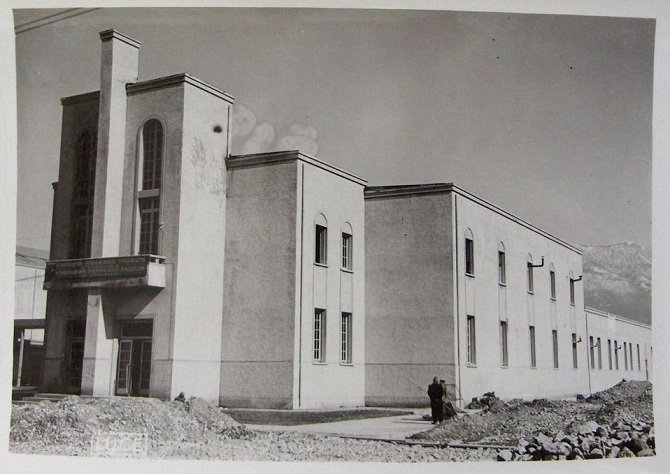 Fig. 6 Pamje e Teatrit Kombëtar (Circolo Skënderbej) te sapondërtuar. Objekti ka paraqitur gjithnjë aspekte interesante dhe cilësore nga pikëpamja hapësirës dhe stilit.