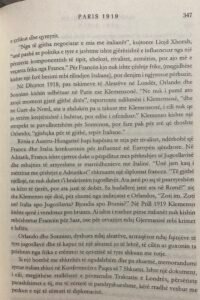 [12] Margaret Macmillan, “Paris 1919: gjashtë muaj që ndryshuan botën”, “Plejad”, 2006, 631 f., përkthyer nga Fatmir Xharri dhe Myrtezan Shini (pa redaktorë).