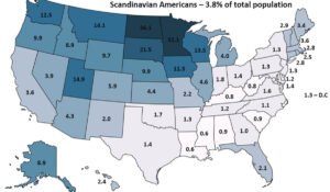 Emigrantët nga Skandinavia u vendosën, në Amerikë, kryesisht në zonat rurale të Midwest-it dhe në Great Plains, veçanërisht në Illinois, Wisconsin, Iowa, Minnesota dhe North Dakota. Sot pjesa më e madhe e tyre jetojnë në Minnesota.