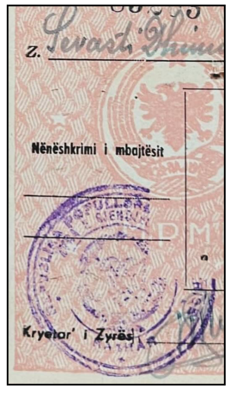 - Kryetar’ i Zyrës. Letërnjoftimi mban firmën e Kryetarit të Zyrës së Gjendjes Civile, por emri nuk dallohet.