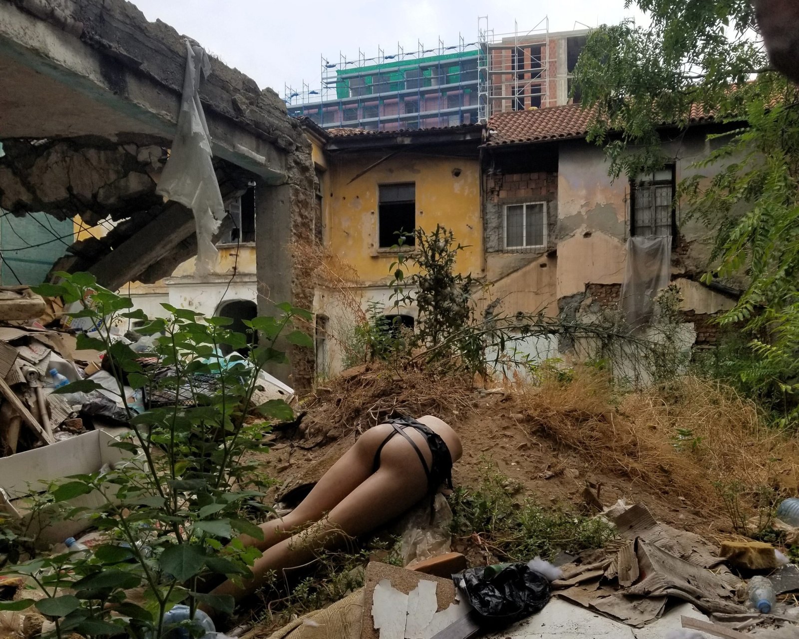 Një gjysmë-manekin që na zuri syri, të mbështetur ngathët mbi një pirg dheu mes plehrave, inerteve dhe bimësisë radioaktive në zemër të rrënojave te rruga Kont Urani kish marrë pamjen e një viktime anonime, të prerë në mes nga ri-orientimi dhe ndër-depërtimi i dhunshëm i rrafsheve të historisë.