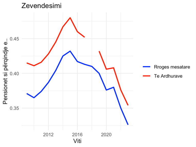 [2] Të dhënat janë për pensionet urbane, por trendi është i njëjtë edhe për ato rurale.